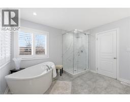 Welcome to the Hemlock model by DeSantis, a beautifully maintained 4+1 bedroom, 3.5 bathroom family home located in the sought-after community of Parkview Heights in Ancaster. Proudly owned by its original owner, this former builder's model showcases quality craftsmanship and thoughtful updates throughout. The main level features hardwood flooring, granite countertops, an oak staircase, California shutters, and a cozy natural gas fireplace in the great room-perfect for family living and entertaining. Upstairs, three of the four bedrooms offer walk-in closets, including a spacious primary retreat with a renovated, spa-inspired ensuite. All bedrooms are finished with new, plush carpeting for added comfort. The fully finished basement provides additional living space and includes a fifth bedroom-ideal for guests, teens, or a home office. Recent updates include a newer roof with lifetime warranty, heated double-car garage, and full irrigation system. Enjoy the private backyard with a large exposed aggregate concrete patio and a charming outbuilding perfect for a kids' play space. Backing onto a quiet walkway, the home offers added privacy with no direct rear neighbours. With approximately 3,200 sq. ft. of total living space, this move-in-ready home is steps to top-rated schools, conservation area, community centre, shopping, and offers quick access to the 403-an ideal choice for growing families.*For Additional Property Details Click The Brochure Icon Below* (id:61594)