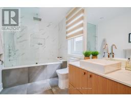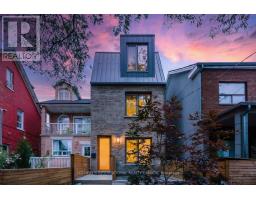 Striking modern masterpiece in the heart of Queen West, this rare Passive Home is designed for both style and sustainability. This ultra energy-efficient home offers over 3,000 sq. ft. of above-ground living space, where sleek finishes and thoughtful details create an elevated urban lifestyle. The main floor welcomes you to an airy open-concept layout, highlighted with wide-plank hardwood floors, a staircase with glass railings, custom oak cabinetry, and designer LED lighting. The chefs kitchen is a show stopper featuring integrated high-end appliances, stone counters, a dramatic backsplash, and an oversized island with seating. The adjoining family room with walkout to the back patio creates a seamless indoor-outdoor connection. Upstairs, soaring 9-foot ceilings continue the sense of openness boasting a serene primary suite with walk-through closet, built-ins, a spa-like 4-piece bath, and large windows overlooking the private terrace. This level also includes a second bedroom with its own ensuite and a full laundry room. The third floor offers a stunning secondary primary retreat, complete with a 5-piece ensuite with soaker tub, walls of closets, and direct access to a private rooftop deck. An additional large bedroom with ample closet space completes this floor. Bathrooms throughout feature premium fixtures by Gessi, Toto, and Nobili, with modern floating vanities and wall-hung toilets. The lower level, with separate entrance, is equally impressive with spacious living/dining area, 4-piece bath, and a generous bedroom, ideal for an in-law, guest, or nanny suite. A detached two-car garage wired with EV charger outlet and rooftop terrace enhances the outdoor lifestyle of this property. Just steps to the vibrant shops, cafes, and restaurants of Queen West and Ossington, and minutes to the upcoming King-Liberty GO Station, this home is the perfect blend of luxury, convenience, and urban energy. (id:61594)