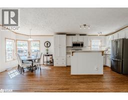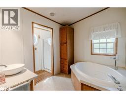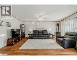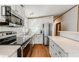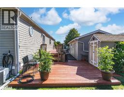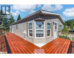 DETACHED GARAGE, INVITING INTERIOR & EASY ONE-LEVEL LIVING IN SILVER CREEK ESTATES! Silver Creek Estates, a land lease community, offers a serene environment with green spaces and walking trails tucked into a quiet, friendly neighbourhood that feels like home from the moment you arrive. Just outside Orillia and minutes from Lake Couchiching, this home is ideally located with quick access to Hwy 11, Costco, shopping, dining, healthcare services, Lakehead University, and Casino Rama. Manicured gardens and a newly stained multi-tiered wraparound deck create standout curb appeal, while the oversized detached garage includes a workshop area, garage door opener, and parking for one vehicle, plus two more spots in the driveway. The bright open-concept layout features updated flooring and fresh paint, a cozy gas fireplace, and an updated kitchen with a newer French door fridge, stove, dishwasher, and over-the-range microwave. Both bedrooms offer walk-in closets, with two full baths including a 4-piece ensuite complete with a whirlpool-style tub and a new shower enclosure. A separate side entrance leads into the mudroom and laundry area, finished with a stackable washer and dryer and a barn-style privacy door. Additional features include an upgraded furnace and AC, a 200-amp electrical panel, an owned water heater, and a separate garden shed. Say goodbye to compromise and hello to comfort in a place you’ll be proud to call home. (id:61594)