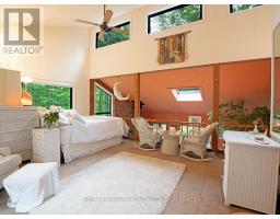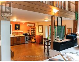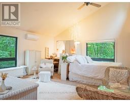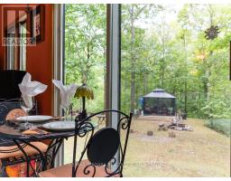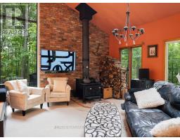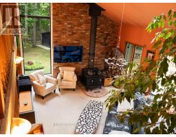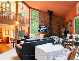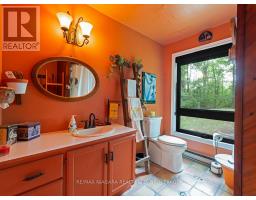 Tucked away in the woods beside the Stevensville Conservation Area, this 3-acre retreat has been cherished by the same owner for over 30 years. A private, paved driveway winds through the trees, opening to a clearing where the home sits quietly surrounded by tall trees and the sound of a gentle creek.Board-and-batten siding, clean rooflines, and natural surroundings give the home a rustic-modern cabin feel perfectly at home in the forest. Inside, the 1,662 sq.ft. layout is open and airy, with vaulted ceilings and floor-to-ceiling windows that frame the forest like living art. A brick accent wall and wood burning stove add warmth, while a mix of wood, tile, and neutral carpets keep the finishes grounded in texture and character. Sliding doors extend the living space outside, where twinkle lights, a gazebo, a circular firepit and a matching shed echoing the homes style together create an inviting atmosphere for quiet nights or creative gatherings.Upstairs, a spacious loft-level primary suite offers privacy with its own 2-piece bath. The full basement provides practical storage and laundry.Artists, musicians, and creatives will find more than just a home here - its a studio in the forest, a place to work, rest, and create in complete privacy. For anyone who values space, seclusion, and distance from neighbours, its a rare chance to own one of the areas most private and protected settings. All of this, while still being just minutes to Stevensville, Crystal Beach, Ridgeway, Niagara Falls, and major highways for easy access to both Buffalo and Toronto.A truly one-of-a-kind opportunity to make the forest your home. (id:61594)