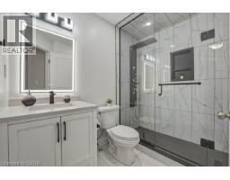 Three-storey freehold townhome in one of Burlington's most convenient locations, thoughtfully updated from top to bottom. New hardwood staircase with iron pickets, engineered hardwood on the second and third levels, renovated bathrooms, and smart home features which include a Nest thermostat, video doorbell, smart smoke detectors and smart lighting with dimmers throughout. The main level has a versatile den that works well as a home office or sitting area, plus a coat closet and access to the garage. Step upstairs to the second level where nine foot ceilings, pot lights, and an open kitchen, living, and dining area give the space a bigger feel. Glass patio doors lead out to a covered terrace. The kitchen has extended cabinetry, quartz countertops, stainless steel appliances, a new microwave, dual sinks and black faucet, and a pantry with built in organizers. Head up to the third level and you've got two bedrooms, both with engineered hardwood, a primary suite with a walk-in closet with built-in organizers, and a fully renovated bathroom with an oversized shower, Pierdeco designer column, quartz vanity, and black hardware. Laundry is on this level too with full sized Washer and Dryer. Tucked away in a quiet, private enclave yet right in the middle of everything Burlington has to offer, top rated schools, parks, shopping, the QEW, and Appleby GO Train are all minutes away. One car garage, owned furnace and AC. All you need to do is move in. (id:61594)