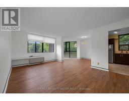 Welcome to the highly sought after Marina Bay, offering comfort, convenience, and lifestyle. This spacious 2-bedroom, 2-bathroom corner unit condo is located on the main level, providing easy, stair-free access. The bright open layout features hardwood flooring throughout the living and dining areas, complemented by a sunlit open concept sunroom area and large windows. The beautifully updated kitchen includes butcher block counters, stainless steel appliances, and extended cabinetry for added storage. The primary suite boasts double closets and a private two-piece ensuite, while the main bathroom has been completely modernized with a glass walk-in shower and tiled surround. A generous second bedroom, ample closet space, and the practicality of in-unit laundry with a stackable washer and dryer complete the interior. Marina Bay residents enjoy exceptional amenities: a rooftop patio which is currently being completely redesigned for modern appeal, outdoor pool, fitness area, squash courts, sauna, indoor whirlpool, party room, billiards, library, and secure underground parking. This condo offers easy access to shopping, dining, public transit, HWY 417, and the scenic paths and waterfront at Britannia Beach. (id:61594)