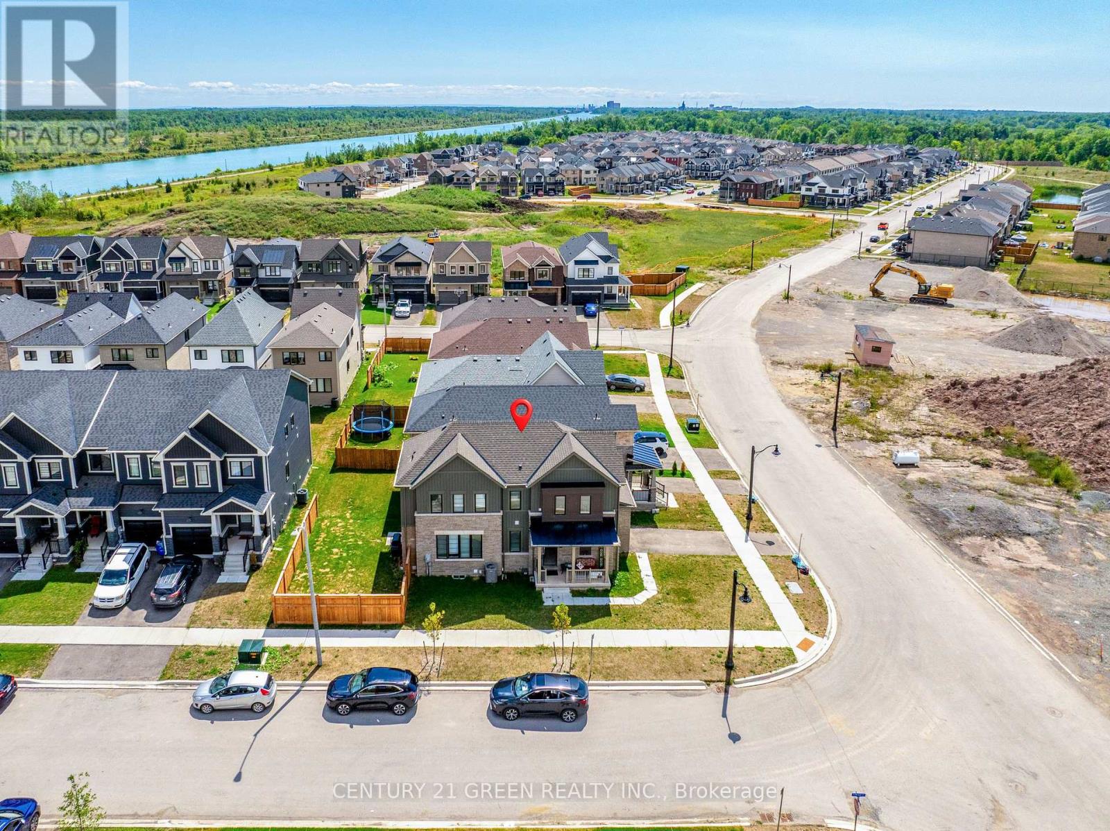 Empire Express Two-Story Home on Premium Corner Lot in Empire Canals! Welcome to this beautifully crafted, nearly-new executive home located in the sought-after Empire Canals community in Dain City. Perfectly situated just a 5-minute walk to the Welland Canal and The Cove Park, this property offers the ideal blend of modern living and natural surroundings. Set on a premium corner lot, this home is just under 2 years old and showcases high-end finished, oak staircase, and oversized windows that flood the space with natural light. The open-concept main floor is ideal for both family life and entertaining, featuring a spacious living and dining area, plus a stylish kitchen with a large island and plenty of cabinetry. Upstairs, find a generous primary suite complete with a walk-in closet and private ensuite bath. The second floor also offers two additional spacious bedrooms, a convenient second-floor laundry, and a modern 3-piece main bath . Equipped with a 200 AMP electrical service,The unfinished basement includes a bathroom rough-in and is ready for your personal touch whether you envision a rec room, gym, or in-law suite. This home is move-in ready and located close to walking trails, schools, shopping Plaza, Restaurant, hospitals, and just a short drive to Highway 406, making commuting a breeze. (id:61594)