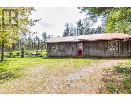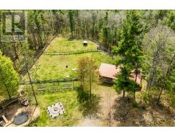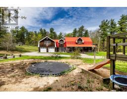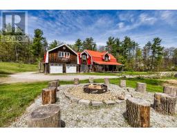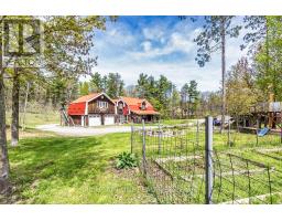 Remarkable 21.25 acre property offers a rare combination of land, versatility, and self-sufficient living. The home provides a larger living area than currently reflected by MPAC. Perfect for homesteading, farmsteading, or a self-reliant lifestyle, this property is thoughtfully designed for those seeking space, independence, and long term potential. include two cabins, a trailer with hydro and deck, two vegetable gardens, including one with a greenhouse, established berry bushes, and mature fruit trees. Outdoor living with an above-ground pool, fire pit, and playground area, creating inviting spaces for relaxation and connection. The home features a flexible layout with two kitchens and separate entrances, making it well-suited for extended family or multi-generational living. The main floor can be reconfigured to accommodate a living room, family room, home office, studio, or private retreat. A spacious and versatile great room with its own separate entrance offers endless possibilities. Accessible through the hall from the deck. This space features existing plumbing and sits beside a 2-piece bath with potential to expand to a full. Ideal for a home office, studio, or guest retreat. Wood stoves provide warmth and rustic charm throughout the home. Recent improvements include a new hot water tank, pressure tank, and well pump completed in 2022, along with a dual fuel gas and propane generator for added reliability. The barn is equipped with water, electricity, a tack room, and a paddock with livestock fencing. Additional outbuildings include three chicken coops, a large outbuilding with two garage doors, including one with a wood stove, and a covered dog kennel with runs. (id:61594)