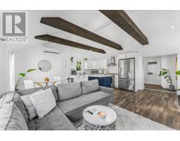 Welcome to 414 Washington, and adorable 2 bedroom bungalow that has been completely and tastefully renovated! Huge open concept kitchen, dining and living room space has high vaulted ceilings and wooden beams, which make it feel open and bright! Lots of cabinetry and a kitchen island, make it very functional and practical for entertaining, complete with newer stainless appliances. The master bedroom has a walk out to a deck with a view overlooking the east facing backyard. Convenient stacked laundry. Beautiful & stylish bathroom. All newer flooring throughout, newer windows and 2 newer Arctic Series high efficient heat pumps provide quiet and efficient heating and cooling! Brand new paved driveway! Added bonus feature is a 12x20 detached former garage with power, which provides lots of opportunity and potential uses. Workshop, workout area, office...or could be turned back into a detached garage. Located on a large 50x181 lot, moments from Fort Erie shopping, the Lake, Crescent Beach, the Friendship Trail an so much more, yet without the busy subdivision feel. An excellent opportunity for a first timer, or down-sizer. Not a thing to do! (id:61594)