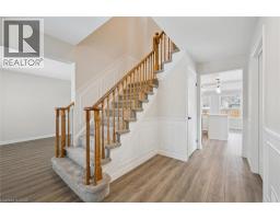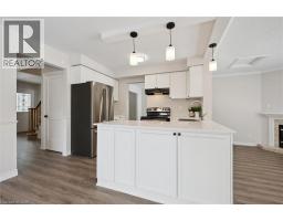 Newly renovated 2 storey home in the heart of Fergus, and boasting three bedrooms and three bathrooms above grade. Walk into this bright, newly floored and painted space, this grand entrance is welcoming, with large living room and dining room to the left, two piece bath , access to the garage, walkout laundry to the right, and straight through to the open, bright white eat in kitchen with stainless appliances and quartz counters. This room opens to both the family room with gas fireplace and walk out to newly fenced rear yard from the eating area of the kitchen. Upstairs you will find a generously sized Primary bedroom with 3pc ensuite and walk-in closet. There are 2 other bedrooms on this level that share the newly refreshed 4pc bathroom. The basement is completely finished with a large rec room as well as utility room and storage area. Upgrades and updates include Roof 2023, furnace air conditioning and air sealing 2019, windows 2018, fence 2025, flooring on all levels 2026, all walls and trim painted (including kitchen cabinetry) 2026, new closet and interior entry doors, lighting, screen door, and the list goes on. (id:61594)