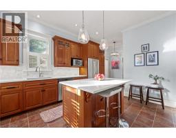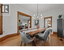 Step into timeless elegance with this beautifully preserved century home, offering over 3,500 sq ft of finished living space and brimming with charm and character. Located in the vibrant heart of Listowel on a spacious corner lot, this 5-bedroom, 2-bathroom home blends historic detail with thoughtful updates, making it ideal for families, or those looking to run a home-based business - there's a dedicated space conveniently located on the main floor perfect for an office. Rich in historic detail, the home features stunning stained glass throughout, soaring ceilings, and generous room sizes that reflect its heritage. The kitchen has been tastefully updated with solid oak cabinets, new stainless steel appliances (2025), a pantry, and a striking hand-cut Turkish marble backsplash. The main bathroom was converted in 2024 from a laundry room into a stylish and functional 4-piece bath. Additional updates include new lighting throughout the home, some newer double-hung windows, fully parged interior walls, and sprayed urethane insulation for added comfort and efficiency. Enjoy your mornings on the large covered front porch and host summer evenings under the backyard gazebo. Located along the school walking route, snow removal on the sidewalks is conveniently handled by the town - just one of the many perks of this unique corner lot location. Full of warmth, space, and possibility, this home is a rare gem waiting to welcome its next chapter. This is your chance to own a piece of Listowels history. Don’t miss it! (id:61594)