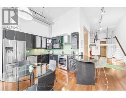 $938.03 MonthlySpacious and stylish two-storey hard loft in downtown Toronto with many unique industrial features and attention to detail throughout. 14 foot ceilings, huge floor to ceiling warehouse windows with motorized blinds, exposed ductwork and original concrete mushroom columns. Track lighting either manually or app controlled. Sleek modern open-concept kitchen overlooks the dining and living area with immaculate hardwood flooring and gas fireplace. There's a large updated bathroom with dual glass sinks and a separate 2nd bedroom/den area. Walk up the tempered glass stairs to the mezzanine primary bedroom with lots of closet space. Amenities include a rooftop deck with gas BBQs, a tree lined courtyard for gatherings, visitor parking and a dog run. If you want to live in an exceptional Toronto hard loft with stunning industrial vibe, you'll love this condo at the Brewery Lofts. (id:61594)