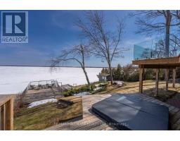 Tucked along the tranquil shoreline of Lake Couchiching, this cherished waterfront stylish residence tells a story nearly three decades in the making. Held by the same family since 1991, this is a rare offering with 100FT of direct lakefront where each sunrise paints the lake in soft gold and every moment feels effortlessly connected to nature. Step inside spanning over 2,900+ sq ft of thoughtfully designed living, where the heart of the home opens into: MAIN, Foyer, Powder room and Laundry/Closet nook leads into culinary-inspired grey kitchen with stone countertops anchors the space, overlooking the dining and living areas framed by wall-to-wall windows where morning light pours in, offering uninterrupted sunrise views across the water, an everyday luxury that never fades. As the day winds down, retreat to the family room where western skies glow with sunset hues, creating the perfect backdrop to relax and recharge. Primary suite is complete with its own ensuite bath and generous his+hers closets. LOWER GROUND LEVEL, extends the home's story, offering 3 principal size bedrooms, each with ample closet space, a beautifully appointed 4-piece spa-inspired bath with slate tile finishes & heated floor. Designed for both comfort and connection, this level becomes the ultimate gathering space, featuring a recreation room with fireplace, full bar with kegerator, and a sauna for moments of indulgent escape. EXTERIOR: Hydropool Spa Hot Tub, Boathouse, Sleeping Bunkie furnished for 5 guests. This is a rare blend of legacy, lifestyle, and lakefront living. "This is more than a home, it's a waterfront story waiting for its next chapter." (id:61594)