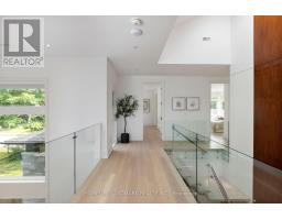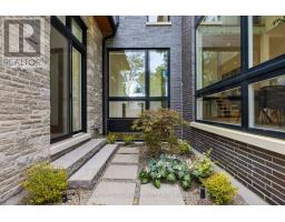 Welcome to 418 Pine Cove Rd, a stunning custom-built home in Burlington's Roseland neighborhood. This 4+1 bedroom, 4+1 bathroom residence offers 5,136 sq ft of luxurious living space. Its contemporary style features natural Eramosa Limestone, Ebonite Smooth bricks, Longboard siding, and ACM panels. Experience the epitome of luxury living with premium finishes, soaring high ceilings (11' on the main level and a double-height dining room), and expansive windows that flood the home with natural light, creating a bright and airy atmosphere. The modern design is enhanced by a Smart Home system, wire-brushed white oak hardwood floors, an impressive 10' tall Mahogany door, walnut paneling, premium XL engineered slab flooring, and a steam shower in the primary ensuite. The gourmet kitchen boasts top-of-the-line Miele appliances and a large waterfall island, while the great room's wall unit with a built-in frame TV and 3-sided linear gas fireplace provides a cozy focal point. The professionally landscaped exterior includes a Japanese courtyard with a water fountain, a rear deck, and a spacious backyard with direct access to General Brock Park. A home office offers a serene work environment with large windows overlooking the courtyard, allowing for plenty of natural light and a peaceful view. Additional features include an EV charger, two skylights, double air conditioning systems, and a bright, practical layout designed for contemporary living. (id:61594)