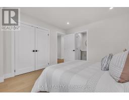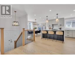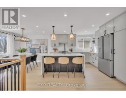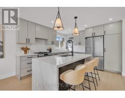 Welcome to 4185 Sutherland Crescent - a fully renovated raised bungalow in the heart of Burlington's desirable Longmoor neighbourhood. Thoughtfully redesigned from top to bottom, this 3+1 bedroom, 3-bath home offers the ideal blend of refined finishes and versatile living space. The open-concept main level is designed for connection and entertaining, anchored by a two-tone contemporary chef's kitchen featuring an oversized island, stainless steel appliances, and seamless flow into the dining area. Engineered hardwood flooring, pot lights, and curated designer finishes create a bright, cohesive aesthetic throughout. The spacious living room with a sleek electric fireplace provides a warm and inviting gathering space, while the primary suite offers a private retreat complete with a spa-inspired 3-piece ensuite and custom glass shower. A beautifully appointed 4-piece main bath showcases elevated finishes and thoughtful design. The fully finished lower level expands the home's functionality with a sunlit family room highlighted by a gas fireplace, an additional bedroom, full bathroom, and a secondary kitchen with walk-up access to the rear patio. Ideal for multi-generational living, guests, teenagers, this level adds exceptional flexibility rarely found in homes of this caliber. Outside, the landscaped backyard with interlock patio creates the perfect setting for summer entertaining, family gatherings, or quiet evenings outdoors. Situated on a quiet, tree-lined crescent near top-rated Nelson High School, parks, shopping, GO Transit, and convenient QEW access, this turnkey property delivers luxury, utility, and location - perfectly suited for families who value both style and substance. (id:61594)