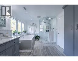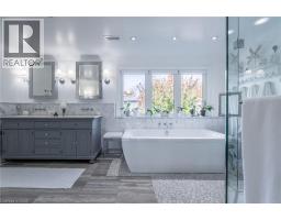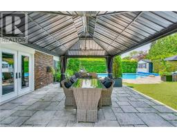 Step into this beautifully renovated two-storey home, where charm and warmth welcome you from the moment you arrive. With over 3,100 sq. ft. of finished living space, this 4-bedroom, 4-bathroom residence seamlessly blends timeless character with high-end modern finishes. The main level boasts heated tile flooring, a spacious dining area with a nostalgic wood-burning fireplace, and a chef-inspired kitchen featuring premium appliances—including a GE Monogram range and Dacor refrigerator—perfect for hosting family and friends. Upstairs, the expansive primary suite offers a cozy gas fireplace, custom wardrobes, and a spa-like ensuite with a steam shower and soaker tub. One of the additional three bedrooms also enjoys its own private ensuite—ideal for guests or teens. The fully finished basement provides a generous rec room, laundry area, and abundant storage. Step outside to your own private retreat featuring a saltwater heated pool, a custom Italian cobblestone patio, mature grapevines, and a spacious gazebo—an ideal space for relaxing or entertaining. With a freshly painted exterior, numerous system updates, and a double-wide driveway, this stunning home is nestled in Burlington’s sought-after Shoreacres community, just a short stroll to parks, top-rated schools like John T Tuck Public School, and only five minutes to Paletta Lakefront Park. (id:61594)