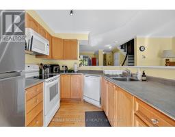 Lovely townhome situated on a quiet crescent surrounded by young families. This well-maintained property backs onto the park and recreation area of the St. Laurent Complex with no rear neighbours and full southern exposure. Enjoy direct access to green space and community amenities including a pool, library, skating rink, gyms, and more. Pride of ownership shows throughout. The original owners made thoughtful modifications at construction, adding extra space to the dining and kitchen areas. Hardwood flooring runs throughout the main and upper levels. The main bathroom features a beautiful skylight, bringing in plenty of natural light. Step outside to a private, low-maintenance backyard with lovely landscaping and open views - the perfect spot to relax or entertain. The unfinished basement is framed and ready to be completed as a future family room. A bright, cheerful home in a great community close to parks, schools, and transit. (id:61594)