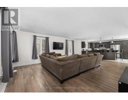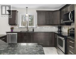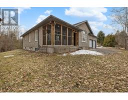 Welcome to this charming detached bungalow nestled on a private 2.3 acre lot in the highly sought after Victoria Park community. Offering privacy with no rear neighbours, this property provides a peaceful retreat while still being conveniently located to all the Kemptville amenities. Step inside through the enclosed front porch into an inviting open concept main floor, featuring a blend of tile and recently refinished hardwood flooring throughout. The spacious living room is filled with natural light, creating a warm and welcoming atmosphere perfect for everyday living and entertaining. The kitchen is thoughtfully designed with stainless steel appliances, granite countertops, a tile backsplash, and wood cabinetry, offering both functionality and style. The main level also includes a well-appointed 4 piece bathroom and a laundry room with direct access to the double car garage for added convenience. The primary bedroom offers a peaceful and private space, complete with a walk-in closet and a 4 piece ensuite featuring a relaxing soaker tub. Two additional well-sized bedrooms provide ample space for family, guests, or a home office. The lower level remains unfinished, offering excellent potential for customization. It includes a wood stove and is already roughed in for a future bedroom and bathroom ideal for expanding your living space to suit your needs. Outside, enjoy the beautifully treed backyard creating a peaceful, natural backdrop featuring a deck with an attached dog kennel, perfect for pet owners. (id:61594)