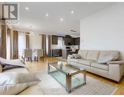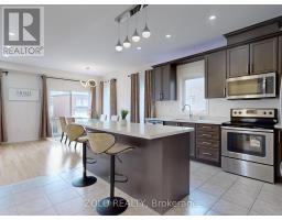 This stunning home, located on a premium pie-shaped lot, offers nearly 3000 square feet of beautifully designed living space. The open-concept layout features 9-foot ceilings, creating a spacious and airy atmosphere. The modern eat-in kitchen is equipped with a large center island, breakfast bar, quartz countertops, and stylish lights/ pot lights. The dining area provides a walkout to the deck and backyard, making it ideal for entertaining. The formal family room includes a cozy gas fireplace for added warmth and comfort. Upstairs, you'll find four generously sized bedrooms, with the convenience of a second-floor laundry room. The custom-finished lookout basement apartment, accessible through a separate entrance, includes a fifth bedroom, a 4-piece bathroom, a second laundry, a full kitchen, and a built-in sound system. Close public and catholic shool.. (id:61594)