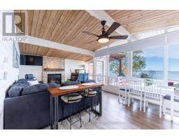 Tucked along a peaceful stretch of Lowbanks shoreline between two quiet roads with no through traffic, this beautifully updated lakeside cottage sits on over half an acre and offers stunning panoramic views of Lake Erie - the perfect year-round retreat for families & friends to relax and reconnect with nature. Inside, the cottage has been thoughtfully refreshed with crisp white finishes complemented by warm natural elements such as wood ceilings and a stone fireplace; creating a bright yet cozy lakeside atmosphere. The open-concept living and dining area is flooded with natural light from a spectacular window wall overlooking the lake, while the gas fireplace adds warmth and charm on cooler evenings. 3 bedrooms and a 4-pc bathroom complete the comfortable main-floor layout. Step outside through the patio door to the lakeside deck, where you can take in sweeping water views & watch the waves roll in. The armour stone terraced yard leads down toward the shoreline, creating a dramatic & beautifully landscaped approach to the lake. Just across Mohawk Point Rd, another armour stone retaining wall frames a small grassy sitting area with a bench - the perfect place to enjoy sunrises, sunsets, and peaceful moments by the water. Below the rock wall lies the beach & Lake Erie itself, where you can launch paddleboards and kayaks, swim, or simply play along the shoreline before heading back to the cottage for lunch or an afternoon nap. Evenings are made for bonfires, star-filled skies, and time with family & friends. Accessed via Kimber Rd, the driveway leads to the rear of the property where you'll find a second deck, patio dining/BBQ area, and a large storage shed for kayaks, etc, all set within the expansive tree-lined backyard that provides privacy & plenty of space to relax or play. Whether you're looking for a weekend escape, family cottage, or peaceful lakeside retreat, this property offers the sights, sounds & simple pleasures that make life on Lake Erie so special. (id:61594)