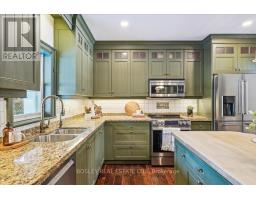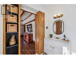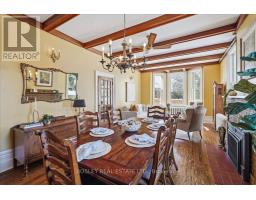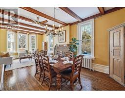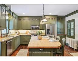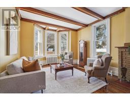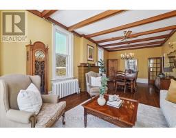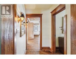 Provenance meets modern versatility! Historically known as the original "Cousins Farm House," this residence is situated on a rare, double wide 100 ft lot, offering presence and privacy. Spanning approximately 3,000 square feet, this 4 bdrm 3 bath home preserves its architectural integrity with original pine flooring in the farm style kitchen, high ceilings, intricate wood mouldings, expansive living and dining areas and a family room with coffered ceilings. The first of 3 bathrooms is centrally located, serving the main floor rooms with ease. The main floor boasts grand principal rooms, the second level features 4 bedrooms. The principal suite includes a renovated ensuite, while two generous secondary bedrooms are served by a central hall. A standout feature is the use of the second floor over the kitchen and garage; separated by a large hallway ideal for a home office or library this wing includes a 4th bedroom, full 4 piece bath, and laundry. This configuration offers exceptional privacy, making it perfect for a secluded primary retreat, nanny suite, or multi generational living. The exterior has meticulously manicured landscaping maintained by a local favourite garden centre. The backyard features an in-ground pool framed by mature trees and hedging, a side yard for pets or play, and a sauna accessed via the back path. Mature trees canopy the yard for a perfect balance of sun and shade, so those days in the pool with family and friends are idyllic. Practical needs are met with a double car garage, additional carport, and ample parking. The location offers a perfect balance of quiet residential life and urban convenience. Easy access to the GO Train makes for a seamless commute. Only steps away are premier parks, local boutique shops and terrific dining. Extensive green space & community amendments are just a short stroll from your front door. An opportunity to own a piece of local history in a prime, walkable location. PLS SEE VT FOR SUMMER PHOTOS OF BACKYA (id:61594)