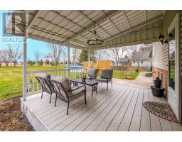 Immaculate raised brick bungalow in the heart of Wainfleet, just a short walk to schools, library, playgrounds, sports fields and the arena. Set on just over 1 acre with no rear neighbours, this beautifully maintained home offers privacy, open views and incredible sunsets. The inviting main floor features an open concept layout with a bright kitchen and dining area, spacious living room, and three generous bedrooms including a primary with walk-in closet. Wide plank hardwood floors add warmth throughout. The finished lower level offers large windows, a spacious rec room with gas fireplace, an additional large bedroom, bonus room and 3-piece shower. Ideal potential for an in-law suite setup. Exterior highlights include a private covered porch overlooking the expansive backyard, 15x24 pool with deck (2022), and chainlink fence (2021). Major updates provide peace of mind: furnace (2021), water heater (2024), full home filtration system (2025), three pumps replaced (2023), rear windows (2023), extended kitchen island with granite counters (2022), and Generac generator maintenance (2024). Attached double car garage completes this move-in ready property. Meticulously cared for inside and out. (id:61594)