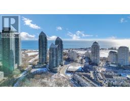 $698.73 MonthlyEnter into this luxurious corner unit condominium, showcasing opulent features and absolutely breathtaking, unobstructed views facing north and southwest, with stunning Lake views. This exquisite two-bedroom, two-bathroom corner unit condominium, complete with 10-foot ceilings which bring in more natural light and turn an average looking room into a stunning piece of architecture, boasts an impressive array of high-end custom upgrades, including custom blinds throughout a beautifully appointed open-concept kitchen equipped with a built-in kinetic drinking water filtration system, Quartz counters, a centre island with breakfast bar, and breathtaking city views. The primary bedroom features a custom-built wardrobe, closets, and an en-suite bathroom, while the second spacious bedroom boasts custom closet organizers. Double balconies the west balcony has custom-fitted composite tiles with views of the water, and the north balcony, with multiple walkouts, is equipped with custom-fitted fire-resistant artificial grass on floating plates. Additional features include an in-unit storage closet with custom shelving, a parking spot equipped with an EV charger, and a locker. All furniture is included except the 4 blue chairs and a few staging accessories. A comprehensive list of custom upgrades attached to listing. (id:61594)