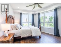 Welcome to this breathtaking and exceptionally spacious 1 bedroom + den condo, situated just steps from Lake Ontario! Enjoy the convenience of an open-concept layout, underground parking for one vehicle, and a unit-level storage locker. From the moment you step inside, you are greeted by tall ceilings, tasteful finishes, and plenty of natural light. The kitchen features dark-toned cabinetry, full-size stainless steel appliances, ample storage, and beautiful stone countertops with a waterfall design siding the peninsula. Adjacent to the kitchen, the dining area features a sliding door walkout to your private balcony, overlooking a trail and greenery. The spacious living room is lovely and the perfect spot for relaxing. The bedroom is a retreat of its own, complete with ample natural light, a large walk-in closet, and a stunning 3-piece ensuite bathroom with a rainfall shower. Additionally, enjoy partial views of Lake Ontario from the bedroom! A great-sized den is located near the front of the unit, ideal for use as a home office or hobby room. A gorgeous 4-piece bathroom and a laundry room complete this lovely home. This well-maintained mid-rise condominium offers retreat-style living with a party room, a fitness room, ample visitor parking, and a rooftop terrace with panoramic lake views and plenty of seating. There is a walking trail that runs alongside the condominium and leads to a beautiful beach, the perfect spot to take in peaceful sunrises by the water. This serene location is just steps from the waterfront and close to numerous parks, schools, restaurants, and more. Ideal for commuting, enjoy easy highway access to the QEW Toronto and Niagara, and to downtown Burlington and Hamilton. Now is your chance to immerse yourself in the fabulous lifestyle this great home offers! (id:61594)