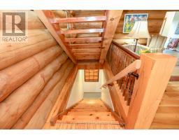 Welcome to 42431 Ron McNeil Line - a beautiful 3717 sq ft one of a kind true-scribed log home, located on a treed 2.562 acre country lot. This stunning log home is full of warmth and character and ready for your family to move in and enjoy for years to come. Driving up to this home, you'll notice the huge wrap-around porch that encompasses 3 sides of the home. The main floor of this home features a Kitchen & Diningroom with a soaring ceiling height of 28' with views to the 2nd floor balcony, a Livingroom - with a nook that's perfect for relaxing or intimate conversations, a south facing Familyroom - with a cozy free-standing gas fireplace/stove and a side entry with access to the basement and the side porch. Note the gleaming biscuit jointed and plugged hardwood forest flooring which consists of an assortment of Ash, Maple, Cherry, Walnut and spalted Maple. This level also offers a 4 piece Bath and a main floor Laundry. The second floor is accessed via a grand staircase to 3 Bedrooms with red pine  flooring - the Primary with ensuite access to the main 4 piece Bath, all overlooking the main floor from the upper balcony. The basement level is finished (strapped ceiling) as a large Recreation Room and potential for 3 more Bedrooms, a Craft Room, Workshop / Storage Room and a Utility Room. Outside you'll find a 28' x 32' two car garage with hydro, water and and in-floor heating (4 zones) - the stainless steel sinks, counters and 2 owned HWT's are included, plus a 10' x 32' lean-to addition.  Bonus - for the hobbyist, mechanic, car collector, there's a 40' x 56' x 14' H pole-barn style shop with 3 -12' x 12' roll-up doors and a workshop area with a mezzanine that includes a 60A hydro service for your welder. Other pertinent features include a 200A hydro service, 63' deep well and a septic system. This home is close to all amenities-St Thomas, London and Hwy 401 if you need to travel further. Please don't miss your opportunity to own this spectacular family home. (id:61594)