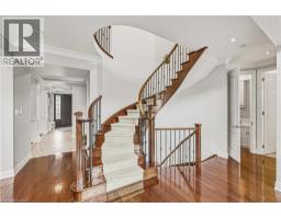 Stunning 4+1 bedroom, 4.5 bath residence set on a mature lot in Lakeshore Woods. Offering approx. 3300 sq ft PLUS a professionally finished lower level, this exceptional home is designed for effortless entertaining and refined everyday living. Impeccably maintained, it showcases quality finishes and a thoughtfully designed floor plan. The open-concept main level features 9’ ceilings and rich hardwood flooring throughout. A dramatic family room impresses with soaring two-storey ceilings, a gas fireplace and an abundance of natural light. The chef-inspired eat-in kitchen is beautifully appointed with granite counters, a generous island, solid wood cabinetry and stainless steel appliances. A formal dining room, private office/den and a well-appointed laundry room with garage access complete the main level. The second floor offers 4 spacious bedrooms and 3 full bathrooms. The primary suite is a luxurious retreat featuring a walk-in closet and a spa-like 5-piece ensuite. The finished lower level extends the living space with a large recreation/family room with gas fireplace, a fifth bedroom, separate den, 3-piece bath and ample storage. Outside, professionally landscaped grounds create stunning curb appeal, while the private, low-maintenance backyard offers a beautiful stone patio framed by mature trees and gardens—perfect for outdoor entertaining. Complete with a two-car garage and double-wide driveway for four vehicles. Ideally located close to schools, parks and all amenities. (id:61594)