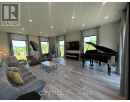 Welcome to 4252 Burnside Line Gated custom-built bungalow on 1.92 acres backing onto Hawk Ridge Golf Course. 4500 sf with radiant in-floor heating, including a fully insulated 1,000 sf three-car garage with two drive-through bays. 800 sf covered porch. Features a 5x12island, Jenn-Air appliances (steam oven, warming drawer), and a 72 Napoleon gas fireplace. 12 ceilings in the main room (10 elsewhere and 8 white oak interior doors with acid-washed qlass. Floor-to-ceiling picture windows fill the home with natural light. Three spacious bedrooms, each with ensuite. Artesian well, starry countryside views, yet only 1 km from town amenities. Symmetrical design with timeless appeal. (id:61594)
