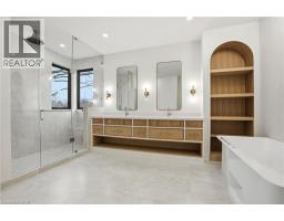 A rare opportunity to own an exclusive, gated custom estate offering unparalleled privacy in the heart of central Burlington, within the highly sought-after Tuck School district. Set on a fully fenced double lot surrounded by mature trees, this brand-new home exemplifies timeless design, refined luxury, and curated craftsmanship, perfect for executive living. The open-concept interior has been thoughtfully designed with high-end finishes throughout. The chef’s kitchen features bespoke, ceiling-height white oak cabinetry, quartz countertops, a marble backsplash, a statement island, and premium stainless-steel appliances. Dramatic living and dining areas boast soaring 10–24 ft ceilings, integrated lighting, and a striking stone fireplace framed by expansive windows. Oversized sliding doors open to a covered, heated patio with Napoleon outdoor kitchen, swim spa, and hot tub, creating a seamless indoor-outdoor experience ideal for year-round entertaining. A custom solid wood entry welcomes you to a dramatic floating staircase with glass panels and open risers, bathing the home in natural light and serving as a modern, elegant architectural centerpiece. The upper level presents a private primary retreat with a walk-in dressing room and spa-inspired ensuite featuring heated floors. Three additional bedrooms each include private ensuites and walk-in closets with organizers. The fully finished lower level, with above-grade windows, includes a fifth bedroom with ensuite, a secluded office, and a private walk-up entrance. Outside, the property is professionally landscaped with a paved driveway for four cars and a double garage. The home also features structural, mechanical, and smart home upgrades throughout, reflecting thoughtful design and enduring quality. This is a prestigious, rare offering in one of Burlington’s most sought-after neighborhoods, delivering timeless, elevated living in a private, curated setting. (id:61594)