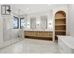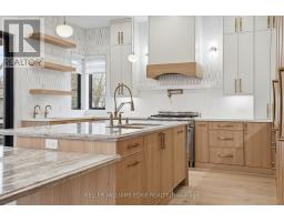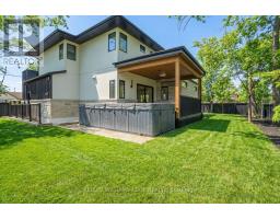 Ultimate Privacy & Security, A gated retreat in Central Burlington. brand new Custom Luxury home in coveted Tuck School District , a most sought-after neighbourhood, set on a fully fenced double lot with mature trees. Chef-inspired kitchen featuring ceiling-height white oak cabinetry, quartz counters & marble backsplash, custom oval lighting above a spectacular center island with seamless quartz skirt, and top-of-the-line SS appliances, creating a flow that anchors this beautifully designed open concept gallery to entertain guests. Hidden doors lead to the custom millwork mudroom and access to the double garage, while oversized sliding doors open to a covered, heated patio with a Napoleon outdoor kitchen, granite counters, and direct access to a swim-spa hot tub, perfect for year-round entertaining. Living and dining areas boast soaring ceilings from 10 to 24 feet, integrated lighting, a stone fireplace surrounded by windows and custom built-ins. Exceptional wood custom front entry door, an eye catching floating staircase with complete light flow of windows as the back drop. Automated blinds to give you that privacy when needed. Upstairs, the master suite offers complete isolation with double-door entry, a walk-in closet/organizers, and a spa-inspired ensuite, double sinks, soaker jet tub,heated floors and separate shower. 3 additional generously sized bedrooms each include private ensuites, walk-in closets/organizers. All windows feature blinds for ultimate convenience and luxury. Fully finished lower level features above-grade windows, lots of storage, bedroom with 3pc bathroom, office space, and as a bonus, a walk-up to the backyard, perfect for jumping straight into the swim-spa. Ideal for in-law living/ teen/ nanny/guests, or games/media space. Professionally landscaped, paved driveway for four vehicles along with a double car garage this home also includes extensive mechanical and structural upgrades smart-home wiring, and so much more. (id:61594)