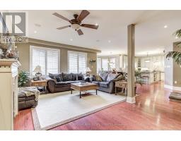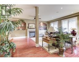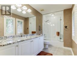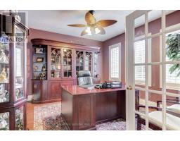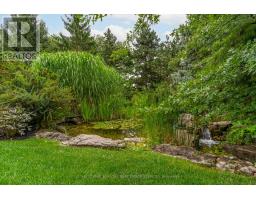 A home built to last, set on a large lot in prestigious Millcroft. This impressive two-storey residence offers over 5,300 sq. ft. of living space, including a fully finished basement, and backs onto the scenic Millcroft Golf Course for ultimate privacy. Designed for those who appreciate a classic layout, the main floor features a formal living room and a private home office off the spacious foyer. The heart of the home spans the rear, where the kitchen, dining, and family room create a seamless space ideal for both entertaining and everyday living. The gourmet eat-in kitchen showcases solid cabinetry with detailed millwork, stone countertops, and stainless steel appliances. A custom laundry room with access to the tandem garage, along with a powder room, completes the main level. Upstairs, you'll find four generously sized bedrooms, two with ensuite access. The west-facing primary suite is filled with natural light and includes a luxurious 5-piece ensuite with double vanity, soaker tub, walk-in shower, water closet, and dedicated makeup area. A large walk-in closet and cozy gas fireplace add both function and comfort. The finished lower level adds over 1,700 sq. ft., featuring a spacious recreation area, 3-piece bath with sauna, a den with potential for a fifth bedroom, and walk-up access to the garage. Step outside to a private backyard retreat with an interlock patio, multiple seating areas, and a custom water garden with a two-tier waterfall overlooking the ravine. Additional highlights include heated floors in all upstairs bathrooms, a tandem garage with parking for four cars, and a four-car driveway. Built by Monarch, this home offers exceptional quality and craftsmanship on a quiet corner lot. (id:61594)