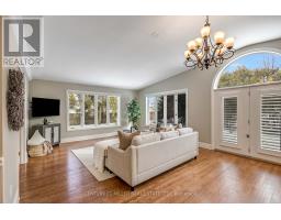 Welcome to this meticulously maintained two-storey home in the highly coveted and peaceful Aldershot South community. Offering over 3,200 sq ft of beautifully finished living space, this stunning 3+1 bedroom, 2.5 bathroom home perfectly blends elegance, comfort, and everyday functionality. Set on a beautifully landscaped lot designed for exceptional privacy, this home offers true tranquility in the city. Start your mornings on the charming covered front porch, where friendly neighbours and a strong sense of community make this neighbourhood so special. The bright, chef's kitchen is designed to impress with quartz countertops, breakfast bar, high-end appliances, and a separate beverage fridge. The spectacular family room offers cathedral ceilings, two skylights, and a dramatic wall of windows. Upstairs, retreat to the spacious primary suite alongside two generously sized bedrooms. The spa-inspired 5-piece bathroom features a glass-enclosed shower, double quartz vanity, and a luxurious BainUltra freestanding soaker tub with massaging jets and chromatherapy lighting. The finished basement provides incredible versatility with a large rec room plus an oversized bedroom and an adjacent 3-piece bathroom, perfect for guests, teens, or multi-generational living. Other features include: hardwood floors, classic wainscoting, and elegant crown moulding throughout. The separate dining room showcases a striking coffered ceiling, ideal for hosting memorable gatherings. Step outside to your private backyard oasis featuring a tranquil pond, lush gardens, and a two-tier composite deck. The impressive 36' x 18' in-ground gunite saltwater pool with non-slip Rubaroc surround is ready for unforgettable summer entertaining. An in-ground sprinkler system keeps the grounds pristine with ease. Additional highlights include a double garage and private driveway with parking for 6 vehicles. Enjoy this unbeatable location just steps to the RBG, lakefront trails, LaSalle Park & Spencer Smith Park (id:61594)