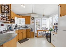 Welcome to 428 Pine Pass, located in the desirable all-season section of Maple Leaf Acres, a vibrant land lease community just minutes from Belwood Lake. This spacious 2 bedroom + den/mudroom, 2 bathroom home offers plenty of room for comfortable everyday living and hosting family and friends. Step inside to a bright and inviting family room filled with natural light, creating a warm welcome as soon as you enter the home. The kitchen flows into a generous dining area, providing ample space for family meals and gatherings. The large primary bedroom features two windows that bring in plenty of sunshine along with excellent closet storage and is conveniently located just steps from a full 3-piece bathroom. The second bedroom offers flexibility for guests, a home office, or hobby space. The versatile mudroom/den includes a powder room, stacked laundry, and additional space that could accommodate a pull-out couch or seating area. A sliding door leads to a private backyard deck, perfect for relaxing outdoors. The yard features a lovely stone walkway and side garden ready to bloom this spring, along with a shed providing extra storage for gardening tools, a golf cart, or outdoor equipment. The home also features a paved driveway with parking for two vehicles. Recent updates include a steel roof (2021), new furnace (2025), and hot water heater (2025), offering peace of mind and making this a well-maintained home you can move into without worry. Enjoy everything Maple Leaf Acres has to offer, including multiple pools, recreational facilities, community events, and close proximity to the Belwood Lake boat launch and outdoor activities. A wonderful opportunity to enjoy relaxed, resort-style living in a welcoming community. (id:61594)