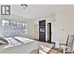 One of the best locations in old Oakville! This exceptional custom home on a quiet side street features a bright freshly painted interior with 10' main floor ceilings, crown mouldings, 3 gas fireplaces, a Control4 full house hard wired entertainment system, elevator rough-in, and site-finished oak hardwood throughout. The main floor features an bright open-concept kitchen, breakfast, and family room area with a full wall of windows overlooking the backyard. The chef’s kitchen has quartz counters, a large centre island, premium cabinetry, and Viking Professional appliances. The family room has a gas fireplace with built-in bookcases. A butler’s pantry with wine fridge and sink leads to the separate dining room finished with a coffered ceiling. The main floor mudroom offers garage access with built-in closet and storage. A powder room completes this level. The second level features 9' ceilings, a bright skylit hallway, laundry with built-ins, and 4 generously sized bedrooms. The spacious primary suite features a gas fireplace, walk-in closet, and spa-inspired ensuite. The lower level has 9' ceilings, radiant floor heating, oversized windows, a separate entrance, recreation room with built-ins, gas fireplace and wet bar. A fifth bedroom, 3-piece bath, cold room, and additional storage complete this level. A private low maintenance backyard has a south facing view which extends a full city block. It is fully landscaped with mature plantings and quality hardscaping (id:61594)