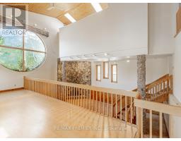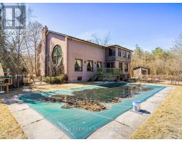 Nestled and tucked away, this 5 acre estate home is over 5000 sq feet and surely to impress. Complete privacy invites you to feel like you are away at the cottage, when you are only 7 min to Hwy 404. There is a large heated workshop with 4 stalls ideal for those looking for an equestrian focused property or a cottage feel near the city with an oil furnace. The home has 4 spacious bedrooms including one bedroom with walkout to stunning sun room to enjoy your morning cup of coffee or take in the beauty that surrounds you. Gourmet kitchen with built in appliances, breakfast room combined with mezzanine dining perfect for entertaining. Great room with adjacent room that can be used as another bedroom or office. Plenty of natural light throughout the home. Large swimming pool to enjoy summer days. 4 wood fireplaces to keep you warm in the colder months. High efficiency boiler. Primary bedroom features 4 pc ensuite with steam shower built in. Finished basement with den, common room, and 2 additional bedrooms. Plenty of storage space throughout. The property comes with a self contained coach house needing finishing touches, perfect for nanny quarters or income potential. (id:61594)