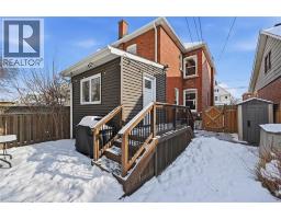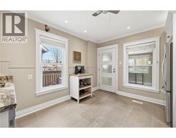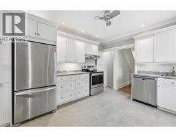 Welcome home! This beautifully renovated detached century home offers 3 bedrooms and 2 full bathrooms, thoughtfully updated from top to bottom, inside and out. Step onto the newly replaced front porch and into a bright, open living and dining area showcasing refinished hardwood floors, crown moulding, and a cozy electric fireplace that highlights the home’s timeless charm and character. The white eat-in kitchen has been replaced and features quartz countertops, stainless steel appliances, and direct access to a generous bonus space; perfect as a mudroom and pantry. The private, fully fenced backyard is a true retreat, complete with a newly replaced upper porch and lower deck surrounded by mature trees. Upstairs, the spacious primary bedroom features a bay window and a large closet with built-in organizers. Two additional spacious bedrooms, all with refinished hardwood floors, and a beautifully renovated 4-piece bathroom complete the second level. The fully finished lower level adds exceptional value with a comfortable recreation room, laundry area, large storage room, and a full 3-piece bathroom, ideal for guests or extra living space. Extensive updates include a replaced roof and eaves, siding, exterior doors, windows, driveway, porches, air conditioning, lead water service replacement, and backflow valve. Located in the heart of Downtown Hamilton, this beautiful, bright and spacious turnkey home is within walking distance to Gage Park and close to Hamilton GO, vibrant restaurants, shopping, and quick access to the QEW and Red Hill. A perfect opportunity to own in Hamilton’s growing and dynamic market, do not miss it! (id:61594)