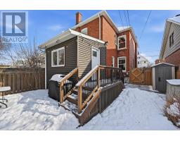 Welcome home! This beautifully renovated detached century home offers 3 bedrooms and 2 full bathrooms, thoughtfully updated from top to bottom, inside and out. Step onto the newly replaced front porch and into a bright, open living and dining area showcasing refinished hardwood floors, crown moulding, and a cozy electric fireplace that highlights the home's timeless charm and character. The white eat-in kitchen has been replaced and features quartz countertops, stainless steel appliances, and direct access to a generous bonus space; perfect as a mudroom and pantry. The private, fully fenced backyard is a true retreat, complete with a newly replaced upper porch and lower deck surrounded by mature trees. Upstairs, the spacious primary bedroom features a bay window and a large closet with built-in organizers. Two additional spacious bedrooms, all with refinished hardwood floors, and a beautifully renovated 4-piece bathroom complete the second level. The fully finished lower level adds exceptional value with a comfortable recreation room, laundry area, large storage room, and a full 3-piece bathroom, ideal for guests or extra living space. Extensive updates include a replaced roof and eaves, siding, exterior doors, windows, driveway, porches, air conditioning, lead water service replacement, and backflow valve. Located in the heart of Downtown Hamilton, this beautiful, bright and spacious turnkey home is within walking distance to Gage Park and close to Hamilton GO, vibrant restaurants, shopping, and quick access to the QEW and Red Hill. A perfect opportunity to own in Hamilton's growing and dynamic market, do not miss it! (id:61594)