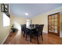 Welcome home to 43 Flamingo Drive, a spotless two-storey home in Hamilton’s sought-after Bruleville neighbourhood, affectionately known as “Birdland,” one of the Central Mountain’s most desirable areas. This turn-key residence offers 4+1 bedrooms, 3.5 bathrooms, a finished basement with in-law suite & a fenced backyard with an above-ground pool. The tidy exterior, 2-car garage and poured concrete driveway & walkway create beautiful curb appeal. A double-door entry opens to a bright foyer with a sparkling tile floor leading into the main living areas. French doors open to a spacious living & dining area. Crown moulding, recessed lighting, fresh paint & gleaming chestnut hardwood floors enhance the bright, polished feel. The eat-in kitchen features tile flooring, shaker-style cabinetry with crown moulding & a sleek honeycomb tile backsplash. Dark LG appliances, including a gas stove, over-the-range microwave & built-in dishwasher, complement the space, while three-panel sliding doors walk out to the rear yard. Chestnut hardwood continues into the family room with recessed lighting & custom oak cabinetry. A 2 pc bathroom serves this level, while the main floor includes a laundry/mudroom with keyless-entry side door & garage access. The garage features an epoxy floor, built-in workbench & side door. The second floor offers 4 bedrooms, including the primary suite with dual closets & a 3pc ensuite. A 5pc bathroom serves the remaining bedrooms. The basement features an in-law suite with bedroom, living area & kitchenette with sink, fridge & counter space. A 4 pc bathroom includes an accessibility-friendly walk-in tub. An office with built-in desk & shelving offers flexible use with soundproof design & observation window. The fenced backyard features a poured concrete patio with gazebo. A 21 ft above-ground pool with cedar deck & gas line for the BBQ and pool heater complete the space. Located within walking distance of schools, parks, Lime Ridge Mall & all amenities. (id:61594)