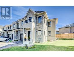 Beautiful end unit freehold townhome, new in 2024, NO condo fees. Custom townhome on extra large pie shape lot in Stonegate Community. Features magnificent stone and stucco architecture with beautiful front elevation with covered porch and faux balcony. Interior features soaring 9 foot ceilings on main level. Custom end unit floor plan with extra windows and bump out on all 3 levels for extra square footage made possible by wide and private pie shape lot. Open concept kitchen, large living room, chef's kitchen with cabints made wider and deeper for larger fridge, taller uppers cabinets, lower pots & pans drawers, peninsula with breakfast bar, "Quorastone" quartz countertops. This home is carpet free with beauiful and durable,modern vinyl plank floors. Bright upper level features 3 spacious bedrooms with larger windows, including primary bedroom with ensuite bath, walk-in closet plus bonus loft/office area. New owners get balance of Ontario New Home Warranty. Large basement with endless possibilites including rough-in extra bathroom plumbing and energy efficient features. Don't miss this fantastic home. (id:61594)