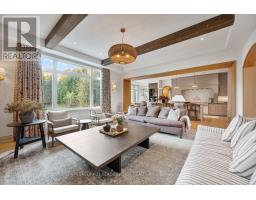 Set on nearly 1.5 acres and enveloped by untouched forest, this remarkable estate boasts more than 8,000 square feet of finished living space, including a walk-up basement, ideal for both single-family or multi-generational living. Expertly crafted and privately constructed outside of standard builder specifications, this home was professionally designed by a House & Home Top Designer. Every detail has been carefully planned and curated for both function and beauty, from premium wall finishes and distinctive tile work to dramatic beamed ceilings and statement light fixtures, just to name a few. Whole home automation provides easy controls of security, climate, cameras, Lutron lighting & automated blinds, garage doors and even media. The main floor flows effortlessly, featuring a formal conservatory wrapped in windows, a spacious dining room that opens to the terrace, a stylish office, and a highly functional mudroom. The top-of-the-line custom chef's kitchen includes professional-grade Miele appliances, a Lacanche range, a cozy breakfast area with hidden coffee bar, and a butler's pantry, all overlooking the stunning great room, ideal for entertaining. Upstairs, the luxurious primary suite offers a gas fireplace, wet bar/coffee station, spa-like ensuite, and His & Hers dressing rooms. The finished walk-up basement is equally impressive, with a large recreation room, oversized kitchenette, fifth bedroom, two bathrooms, craft and play rooms, pantry, and a dedicated golf simulator for the sports enthusiast. Outside, the home is professionally landscaped for a grand garden feel. A covered terrace with outdoor kitchen expands your living space. Three garages (one with a lift) hold four vehicles, including access to a flexible space currently used as a private gym. This one-of-a-kind home, with millions spent on custom upgrades, is ready to be appreciated for its luxury and charm. (id:61594)