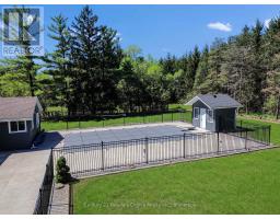 Theres always a statement to be made with a stately, impressive home, and this one delivers. Set on an enormous L-shaped property dotted with fruit trees, this meticulously maintained gem offers a long list of features that make it feel like your own private paradise. The elevated main level is surrounded by lush landscaping and opens up to a luxurious heated executive saltwater pool. You'll find a private garden with a rainwater-collecting cistern, an outdoor activity area, and a giant log pile to fuel your wood-burning fireplace. A private well provides water to the home, and the property is on septic. Theres also a massive outbuilding with a steel roof, roll-up man door, bay door, and additional loft storage. The 12-plus car driveway leaves nothing to be desired. Its a little piece of heaven, close enough to the city that all the major amenities are just a short drive away, but far enough that when you close your eyes at night, you hear nothing at all. Except, maybe, the sound of wildlife in the greenspace this home backs onto. And we havent even talked about the house yet. Step through the front door and turn left into your open kitchen, dining, and living room. Tucked away, you'll find generously sized bedrooms, including a primary suite with a five-piece ensuite and walk-in closet. Turn right and youll find a two-piece bathroom, your laundry room, and an enormous garage. The main floor features a walkout to your beautiful backyard, and no shortage of large windows that keep the space bright and inviting. The lower level offers even more than you'd expect, including a bedroom, cold cellar, utility room, and several bonus rooms that could become nearly anything you imagine. This home is filled with potential, room to grow, and space to breathe. It's been loved, it's been lived in, and now it's ready for someone new to write the next chapter within its walls. (id:61594)
