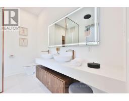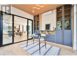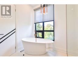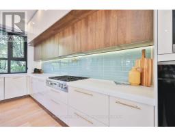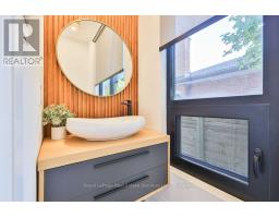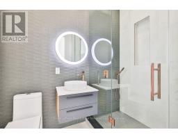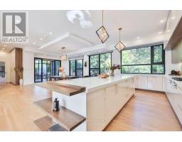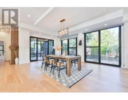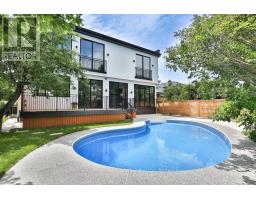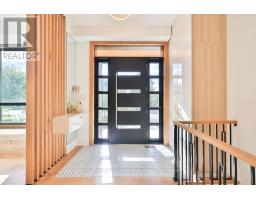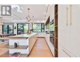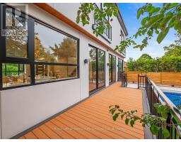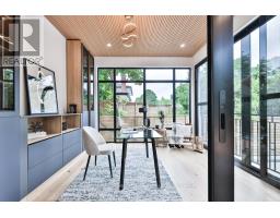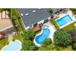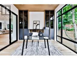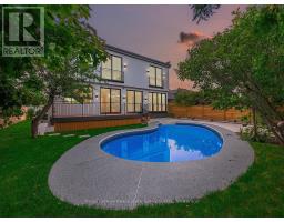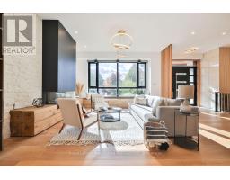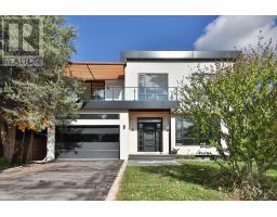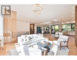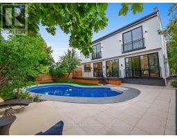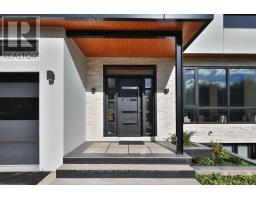 Spectacular custom home, combining West-coast & Scandinavian influences. Over 3300 sqft above grade, light-filled 5 bed, 6 bath with 10' ceilings and salt water pool, set on a quiet street in West Oakville. Appointed with high end & stylish materials throughout including HOPO aluminum windows, doors & steel screens, wide plank hardwood, custom tile work, and upscale modern light fixtures. Impressive white stone + aluminum panel exterior. Custom front door leads to expansive open concept main floor. Living room features gas fireplace set into salvaged looking wooden beams, massive oversized windows and large seating bench with built-in storage. Designer kitchen includes oversized island with quartz counters & integrated Miele appliances. Kitchen & dining room walk out to back deck & pool. Glass walled office includes floor to ceiling windows, custom B/I cabinets & feature ceiling. Floating staircase with aluminum railing leads to the upper level with 10' ceilings, hallway skylights & Polaris chandelier. Primary bedroom features Juliette balcony, accent wall with custom wood paneling, walk-in closet with extensive organizers and ensuite. 5pc primary ensuite with double floating vanity, walk-in glass shower with rain-head & Victoria & Albert soaker tub. Large 2nd & 3rd bedrooms with double closets with extensive organizers, and oversized windows. Main bath features wood accented double vanity, walk-in glass shower & skylight. 4th bed boasts ensuite bath, walk-in closet and walk out to enormous balcony with privacy & shade screens. 5th bedroom features ensuite, Juliette balcony and double closet. Basement includes bar with built-in storage & wine fridge, electric fireplace, large windows, walkout & bathroom. Heated salt water pool (liner & heater 2022), surrounded by stone patio & overlooked by composite back deck with privacy screen and aluminum railings. Double car garage with epoxy floors. Close proximity to lovely Downtown Bronte & Lake, Go train, Schools & Parks. (id:61594)