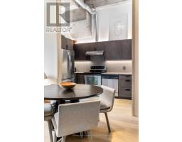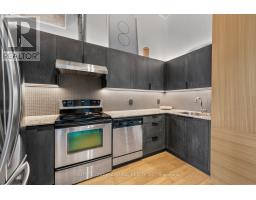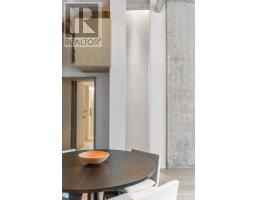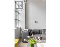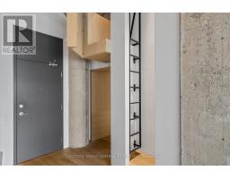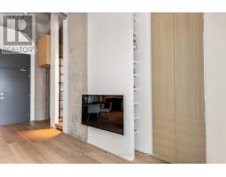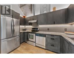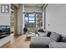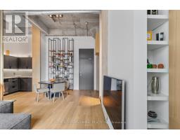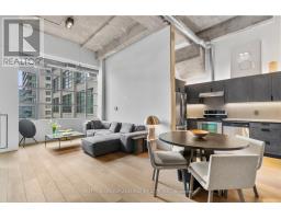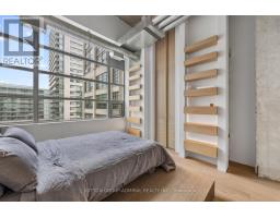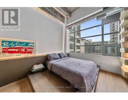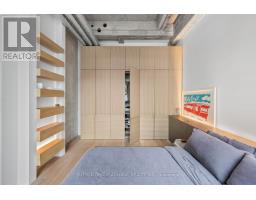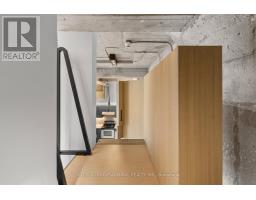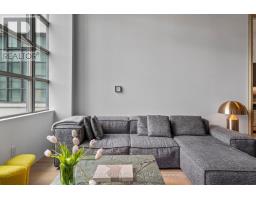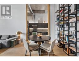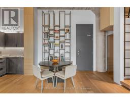 $551.47 MonthlyThis beautifully customized loft was thoughtfully designed by a multi-ward-winning international designer, with a focus on quality, detail, and timeless style. Wide-plank smoked European oak flooring runs throughout, complemented by extensive custom millwork, integrated lighting, and premium finishes that create a cohesive and highly considered interior. The bathroom is finished in large-format limestone with custom millwork, a marble vanity, and ultra-premium plumbing fixtures. Large south-facing windows overlook the rooftop terrace and fill the space with natural light, while automated window coverings provide everyday ease and comfort. The bedroom is bright and inviting, and the expansive mezzanine offers exceptional flexibility, ideal as a second bedroom, home office, or creative studio. The mezzanine also extends the living space beyond the stated 739 sq.ft. enhancing both functionality and the overall spatial experience of the suite. Set within Tip Top Lofts, this is a rare opportunity to own a truly one-of-a-kind designer residence in one of Toronto's most iconic buildings. (id:61594)