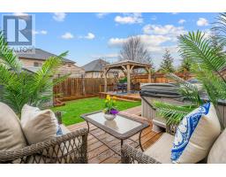 Stunning designer's own home offering over 2,500 sqft. of finished living space with more upgrades than you can imagine. Completely renovated with a focus on quality craftsmanship and timeless finishes throughout. The gourmet kitchen (2023) is the true centrepiece, featuring high-end appliances, an impressive Thermador 8-burner gas range, custom cabinetry with built-in organizers, quartz countertops, mosaic backsplash, under-cabinet lighting, and an oversized 9-ft island designed for both entertaining and everyday living. Wide-plank oak hardwood flooring (2023) runs throughout, complemented by extensive millwork, new oak staircase, designer lighting, and California shutters. The fully updated bathrooms offer modern finishes and a fresh, spa-inspired feel. The open concept living and dining areas provide a seamless layout for hosting, while the upper-level family room offers flexibility and could easily convert to a fourth bedroom. The primary suite features a walk-in closet and private ensuite. The finished lower level includes a spacious rec room with custom wet-bar, wine fridge, new flooring, and additional room with its own bathroom, ideal for guests or home office use. The finished lower level includes a spacious rec room with custom wet bar, wine fridge, new flooring, and an additional room with its own bathroom, ideal for guests or home office use. Additional upgrades include a tankless on-demand water heater and security system with camaras. Located steps to Hilary Bald Park, top - rated schools, the new arena and library, local wineries, and quick QEW access. Professionally landscaped backyard with expansive decking, pergola, and hot tub completes this exceptional home. (id:61594)