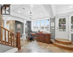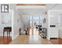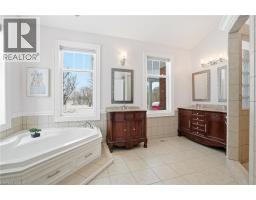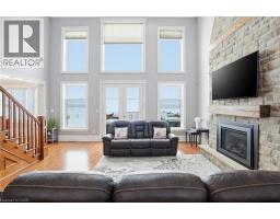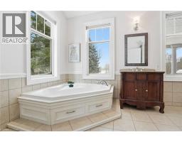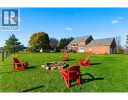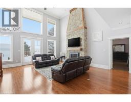 Nearly 5,000 sq ft of custom finished living space across three levels, offering 6 bedrooms and 5 bathrooms, set on a pristine 1-acre lot in Carlisle, plus a separate heated 50’ x 30’ garage/workshop with a winterized loft bedroom. This exceptional multi-generational custom home features a main-floor primary suite with vaulted ceilings and a spa-like 6-piece ensuite, soaring ceilings, floor-to-ceiling windows, and a custom stone gas fireplace anchoring the bright open family room. Designed for everyday living and entertaining, the home offers separate living and dining rooms, an eat-in kitchen with ample storage and stainless steel appliances, and a walkout to the rear deck with long-range country views. Main-floor laundry provides convenient access to both the garage and basement. The fully finished lower level includes above-grade windows, 9-foot ceilings, additional baseboard heating, an upgraded kitchen, two bedrooms, and a bathroom, along with a separate entrance, making it ideal for guests or an in-law suite, plus a walkout to the patio and backyard. Exceptional curb appeal features landscaped grounds, circular drive, and a classic full-width front porch. Additional highlights include roof (2023), owned hot water tank, water softener, reverse osmosis and water treatment system, Generac generator, dual 200-amp electrical panels, and security system with cameras—offering the perfect blend of peaceful country living and everyday convenience, minutes to parks, schools, highways, and major amenities. (id:61594)