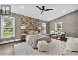 Exquisitely updated, move in ready 3 bedroom, 2 bathroom Dunnville Bungalow situated on premium 69' x 165' lot. Great curb appeal with stone & complimenting sided exterior, & oversized back yard with 16' x 33' deck for entertaining. Truly must view the interior to appreciate the stunning updates throughout this home highlighted by updated eat in kitchen with quartz countertops & backsplash & eat at island, dining area, large living room with electric fireplace, 3 bedrooms highlighted by primary bedroom with vaulted ceilings & lavish 4 pc ensuite with soaker tub & walk in shower, additional primary 3 pc bathroom, desired MF laundry, & welcoming foyer. The unfinished basement provides ample storage & utility area. Updates throughout include premium hardwood & tile flooring, modern decor, fixtures, & lighting, kitchen, landscaping, & more. Conveniently located minutes to downtown, shopping, schools, parks, farmers market, boat ramp, marina, & the Grand River. Experience Dunnville Living! (id:61594)