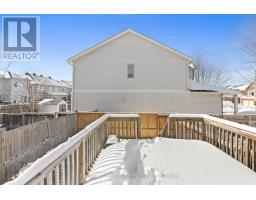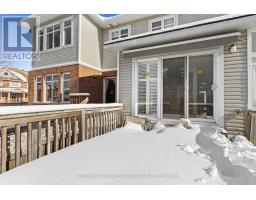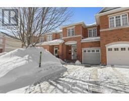 Welcome to this beautifully maintained 3 bedroom, 3 bathroom townhome in the highly desirable Longfields community of Barrhaven. This property was originally a Richcraft model home, showcasing quality upgrades throughout, and has been meticulously cared for by its original owner. Step inside to a welcoming foyer that sets the tone for the thoughtful layout throughout. The main floor features tile and hardwood flooring, offering both style and durability. A convenient two-piece powder room is located just off the entrance, ideal for guests. The spacious living and dining areas are filled with natural light, creating a warm and inviting atmosphere perfect for everyday living and entertaining. The kitchen offers an eat-in area, wood cabinetry. It has been tastefully updated with new countertops, a new sink, and brand-new stainless steel appliances providing a fresh, modern feel with ample workspace and storage. Follow the curved staircase to the upper level, where comfort and functionality continue. The primary bedroom is generously sized and features a walk-in closet and a private four-piece ensuite complete with a walk-in shower and a relaxing soaker tub. Two additional well-proportioned bedrooms, a full four-piece main bathroom, and a conveniently located upper-level laundry room complete this floor. The finished basement expands your living space with a spacious recreation room highlighted by a cozy gas fireplace ideal for family movie nights or a home office setup. You will also find a large utility/storage room with a laundry sink, along with an additional storage room, providing exceptional functionality. Step outside to enjoy the backyard deck featuring a power awning, perfect for relaxing or entertaining while enjoying shade on sunny days. Located close to parks, schools, transit, and amenities that Barrhaven has to offer. (id:61594)