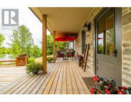 Welcome to Spillway Farm, circa 1835, a stunning waterfront stone home w/ exquisite custom renovations by Hubbard & Co! Located along the Rideau System, UNESCO World Heritage site, this breathtaking waterfront home offers a rare blend of preservation of historic allure w/contemporary convenience & design. Featuring 4 bedrooms + den, 3 full bathrooms & many elegant rooms for entertaining, this home is filled with natural light accentuating its inherent warmth & rich heritage. The custom kitchen w/waterfront view & exposed stone wall showcases luxury cabinetry, granite countertops, an island w/seating, refurbished wood floors & a pantry w/artistic coffee bar! The kitchen leads seamlessly to the elegant dining room w/deep window sills, wide baseboards & refurbished flooring, or to the majestic living room w/stone fireplace, wood hewn mantle & exceptional waterfront views! A side entrance w/inside entry to a garage w/additional loft storage space is conveniently adjacent a full bath/laundry room w/exposed stone wall, farmhouse drop sink & ample cupboard/counter space for laundry area. An office/den off the rear entry deck offers water views, deep window sills & refurbished original floors. The spacious second level showcases 4 bedrooms, one presently utilized as an office, a main bath w/sliding wood door, ample closet & storage space, deep window sills & refurbished floors. The primary bedroom leads to a gorgeous 4-piece ensuite bathroom w/penny round flooring, tiled shower, & a claw tub w/waterfront view! Landscaped w/stunning perennials, rose bushes, numerous tree varieties & a flag stone entry w/full concrete driveway. Rear tiered deck & porch offer many spaces for entertaining; aesthetic stairs lead to expansive dock for unparalleled sunset views! Spillway Farm is a paradise where you can watch loons, osprey, blue herons or traverse the spectacular Rideau waterway via boat from your Fendock; this tranquil waterfront oasis in a historic community awaits! (id:61594)