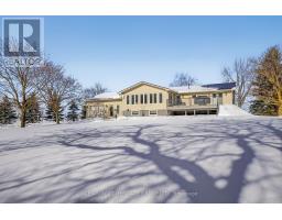 Set on 1.98 private acres, this **turnkey, fully renovated raised bungalow with a rear addition** is designed for effortless living and memorable entertaining. The star of the home is the open-concept great room, featuring a chef's kitchen with a large island, a dining area for 10, and a sun-filled family room with wall-to-wall south-facing windows overlooking the property. Four bedrooms-two up, two down-and two full baths provide flexibility for family and guests. The finished lower level, complete with a second kitchen, is well suited for an in-law suite, extended stays, or a separate space for teens. Outside, a low-maintenance composite deck connects the home to a resort-worthy pool area featuring a heated inground saltwater pool with waterfall, pool house, and wrought-iron fencing-perfect for summer entertaining. The 40' x 33' insulated workshop with running water and two oversized 14' doors offers exceptional versatility-ideal for hosting unforgettable gatherings, a pottery or art studio, home-based business, fitness space, or a dream garage. Metal roofs on all buildings, composite siding on the home, and major updates-including septic and weeping tiles (2011)-provide lasting peace of mind. A wood-burning stove and heated floors in the mudroom and basement bath add comfort throughout the seasons. Impeccably maintained and completely turnkey, this is a home where pride of ownership is evident at every turn-just unpack and enjoy your summer. (id:61594)