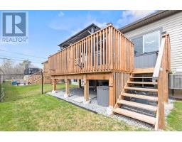 Welcome to this beautifully upgraded freehold townhome located in the sought-after Peace Bridge Village community. From the moment you arrive, you will notice, professional landscaping, a widened concrete driveway, epoxy-finished front porch and garage floors that speak for themselves - pride of ownership shines through and the upgrades are immediately apparent. Inside, the open-concept main floor features upgraded vinyl plank and ceramic tile flooring and a stylish kitchen with a large peninsula, upgraded cabinetry, gas stove, and stainless steel appliances, along with smart blinds, custom light fixtures and pot lights in the kitchen and living room. The main floor also offers convenient inside entry from the garage. This home offers two spacious bedrooms, each with its own walk-in closet and ensuite. One is conveniently located on the main floor, while the upper level features the second bedroom along with a versatile loft space, creating a private retreat that's ideal for children, guests or extended family. The main floor also includes a powder room and laundry for added convenience. The large unfinished basement offers excellent potential, featuring a large egress window and a full bathroom already roughed-in and ready for your personal touch. Step outside to a beautifully finished backyard featuring a large deck with a dedicated gas line for the BBQ, a premium hardtop gazebo with privacy screens, and low-maintenance artificial turf with drainage already paid for and being completed before closing, all within a fully fenced yard. Located just minutes from restaurants, shopping along Garrison Road, Fort Erie's waterfront and beaches, the Friendship Trail, quick access to the Peace Bridge and QEW - this home is the perfect fit for Retirees, commuters, and those looking to simply enjoy everything this wonderful community has to offer. (id:61594)