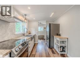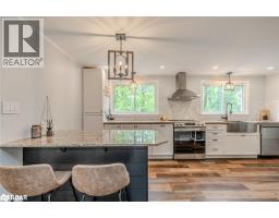 FALL IN LOVE WITH THIS RENOVATED BUNGALOW WITH IN-LAW CAPABILITY & STEPS TO DOWNTOWN! Tucked into a quiet cul-de-sac just five minutes walking distance from the heart of downtown Bracebridge, this cute-as-a-button bungalow is the kind of place that makes you want to stay awhile. Imagine morning strolls to grab coffee, a peaceful visit to nearby Bracebridge Falls, afternoons exploring Wilson Falls Trail, and weekends enjoying local dining, shopping, and the charm of small-town life, all just steps from your door. Extensively renovated and carpet-free, this home showcases a modern style throughout, including a crisp white kitchen with stainless steel appliances, a newer dishwasher, an apron-front sink, a geometric tile backsplash, a peninsula with seating, pot lights, and crown moulding. The spacious primary bedroom features two large windows, a bold accent wall, and warm wood tones, while the main floor laundry offers added convenience with a walkout to the raised deck and a private, tree-lined backyard. The partially finished basement features a self-contained area with in-law potential, offering a second kitchen, living room, bedroom, and full bath. Whether you're a first-time buyer, downsizer, or small family looking for a great starting point, this #HomeToStay is full of possibilities! (id:61594)